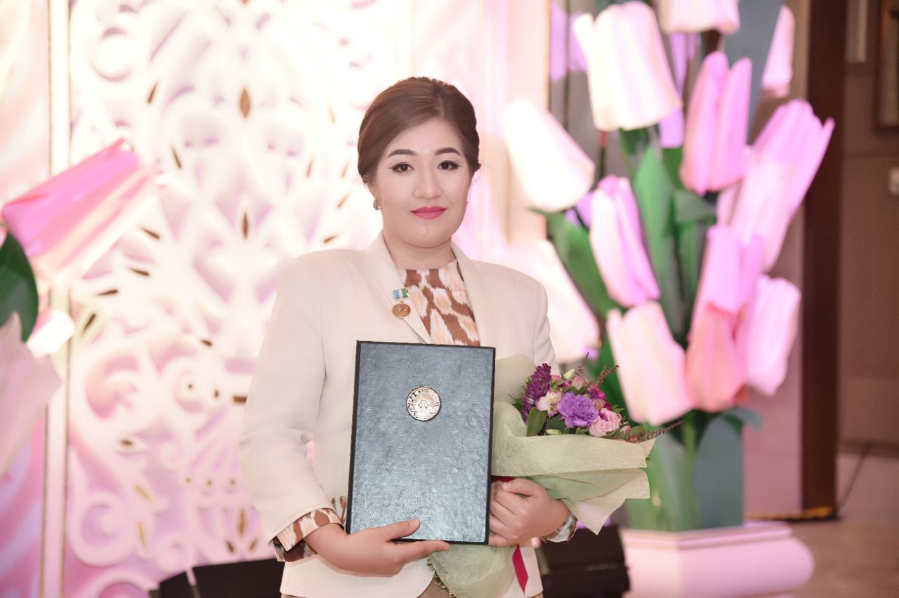 KHAKNAZAROVA UMIDA,(国籍:乌兹别克斯坦),2021年汉语国际教育专业研究生毕业。毕业后在乌兹别克斯坦从事教育工作,致力传播中华文化。2023年获得国家祖尔菲亚奖(从7000多参赛女性中选出28人),该奖由总统颁发,为该国女性最高奖项。她在竞选该奖时,用中文发表演讲,深受评委好评,她在我校的学习经历和传播中华文化的贡献,成为其获奖的重要因素。