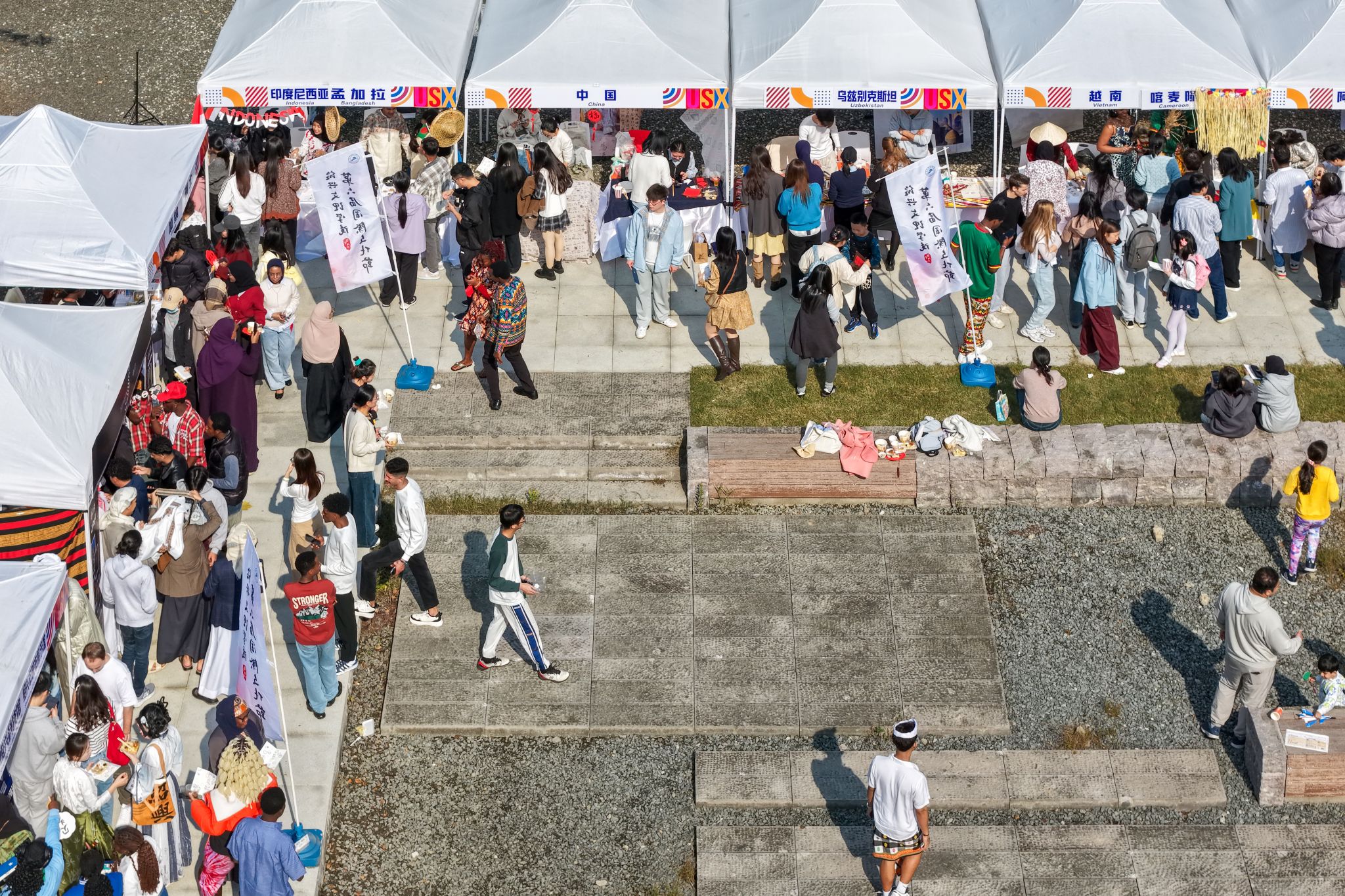 启动仪式后,来自25个国家的学生团队以创意展台形式展示了各国独具特色的美食、服饰、乐器及工艺品等文化元素。来自四家博物馆的“移动博物馆”展区也吸引了众多师生驻足观看。