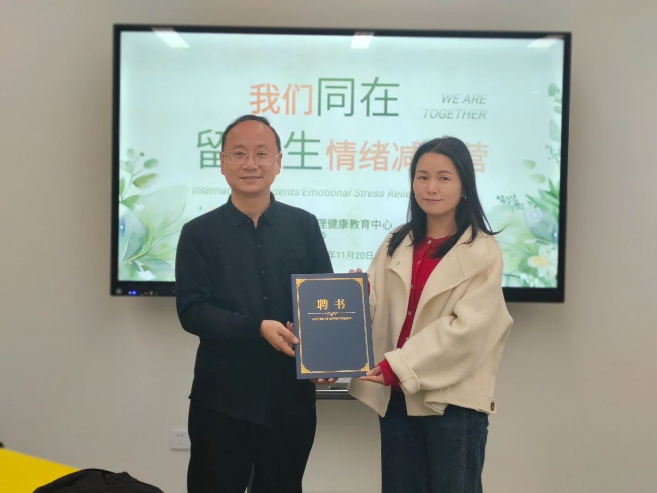 会上,国际教育学院正式聘请顾玲玲老师担任学校“来华留学生心理健康教育导师”。接下来,学院将持续为留学生提供心理健康支持与专业指导,助力留学生以更积极健康的状态适应在华学习与生活。
